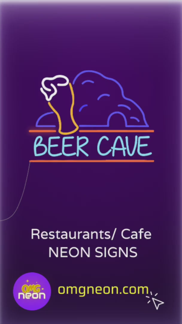 Transform your bar area into a stylish retreat with our Beer Cave Neon Sign! Featuring a striking beer bottle design with "Beer Cave" written below, this neon sign adds a unique and inviting touch to any setting. Perfect for home bars, man caves, or commercial establishments, this high-quality sign is built to last and shine brightly.